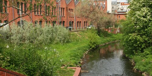 Dort führt Sie Ihre Wanderung vom Bahnhof über den kleinen Fluss Sebnitz in den Ort hinein. Auf der Hertigswalder Straße begegnen Sie einer bemerkenswerten Bauweise, die Sie auf ihrer Tour immer wieder sehen werden: das Umgebindehaus.